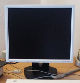 - Ein alter, schon recht ausgelutschter Eizo L795 (Gebrauchtkauf) an einer Dockingstation für mein Dienst-Lifebook S761, dazu Fujitsu KBPC PX und MS Intelli Optical 1.1 aus meinem Fundus.